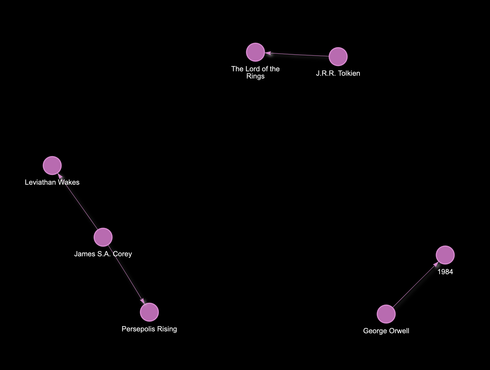 {'id': 'George Orwell'}]}Now, let’s see if it captured our relation (the “authored” edge):