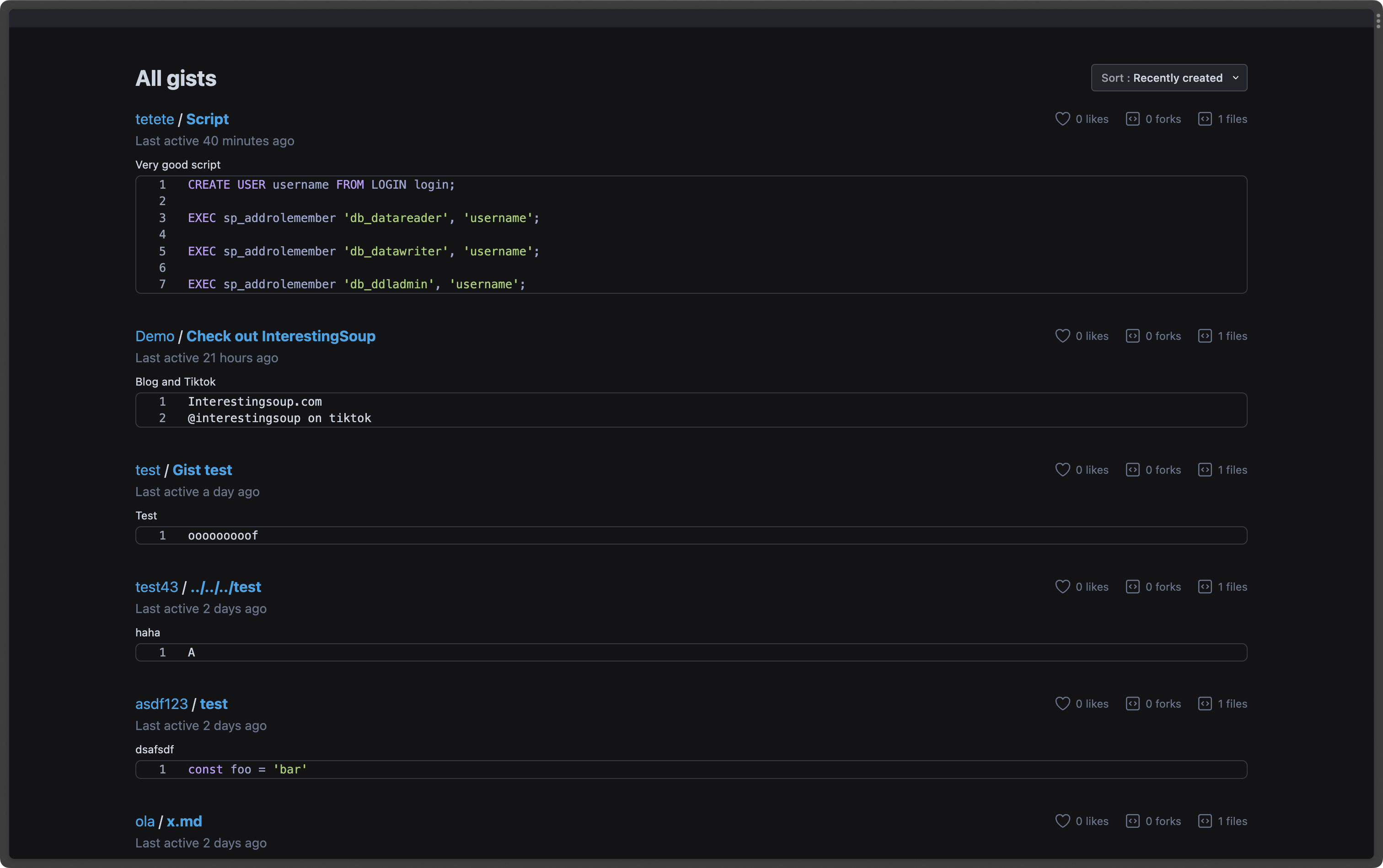 Open Gist is a lightweight, self-hosted GH Gist look/feel-alike, and lets you stop giving Microsoft telemetry and content to steal. The container-running instructions provided in the repo work as-described.