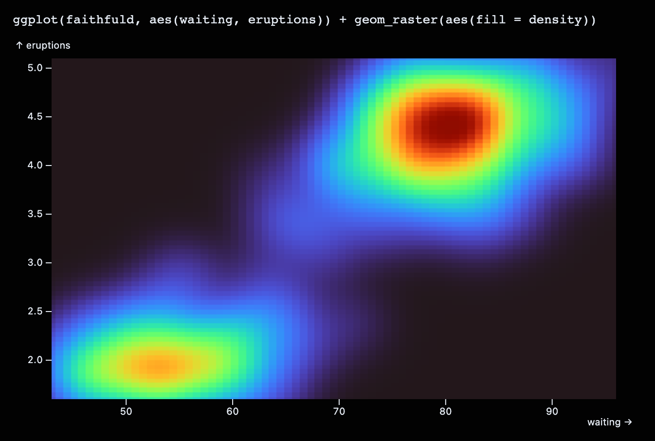 )where that raster id is assigned to this element <div id="geom-raster-01"></div>, and faitfuld came from const faithfuld = await d3.csv('./data/faithfuld.csv', d3.autoType) that I also included.