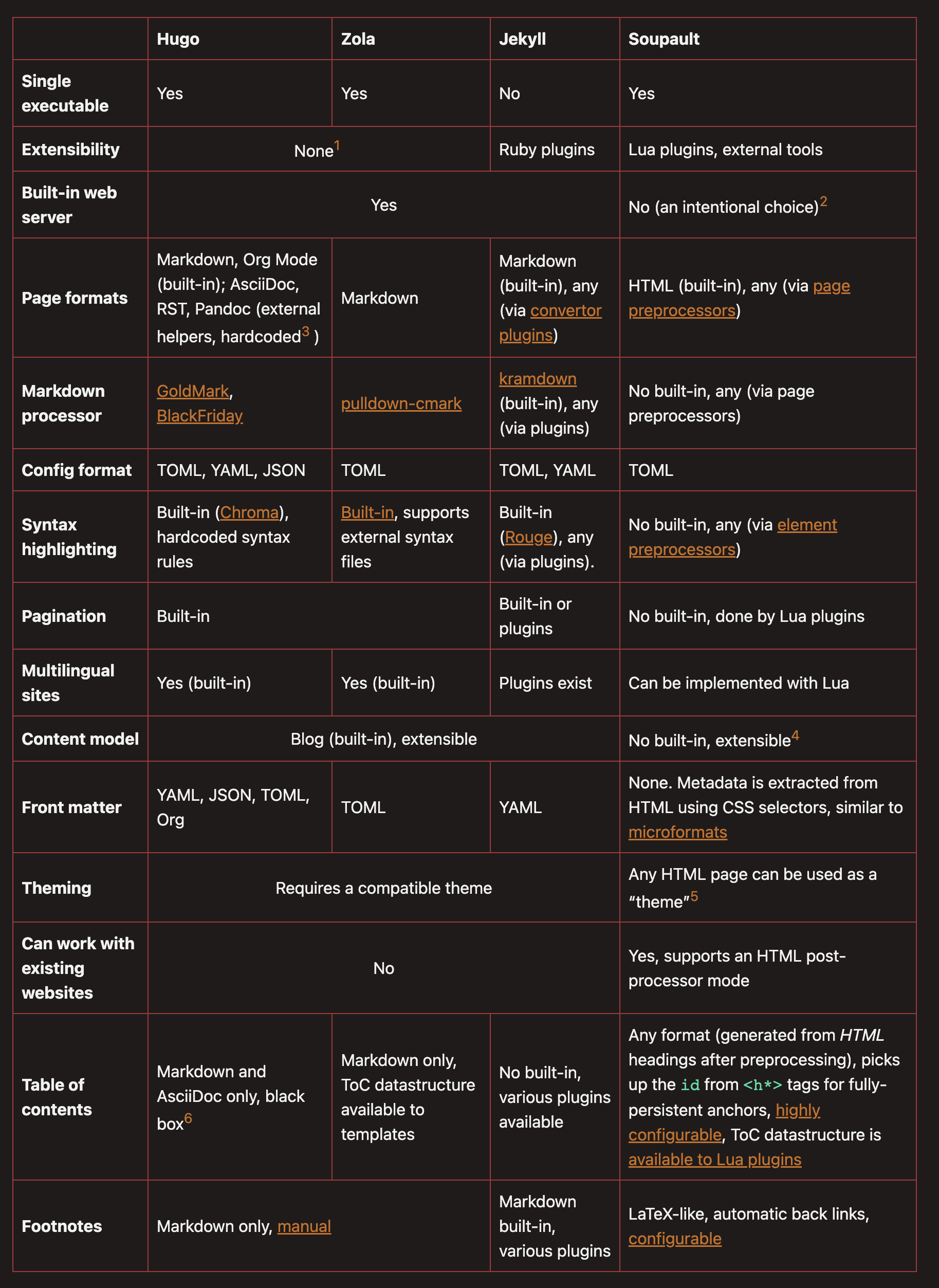First, it’s written in OCaml, a functional programming language I’ve slated for a personal deep dive in ~September. Second, it does away with daft YAML “frontmatter” and uses the semantic nature of properly crafted HTML to extract metadata (to, say, make a blog post index). Finally, the way it handles “templates”, content injection, and extensibility is pretty novel.