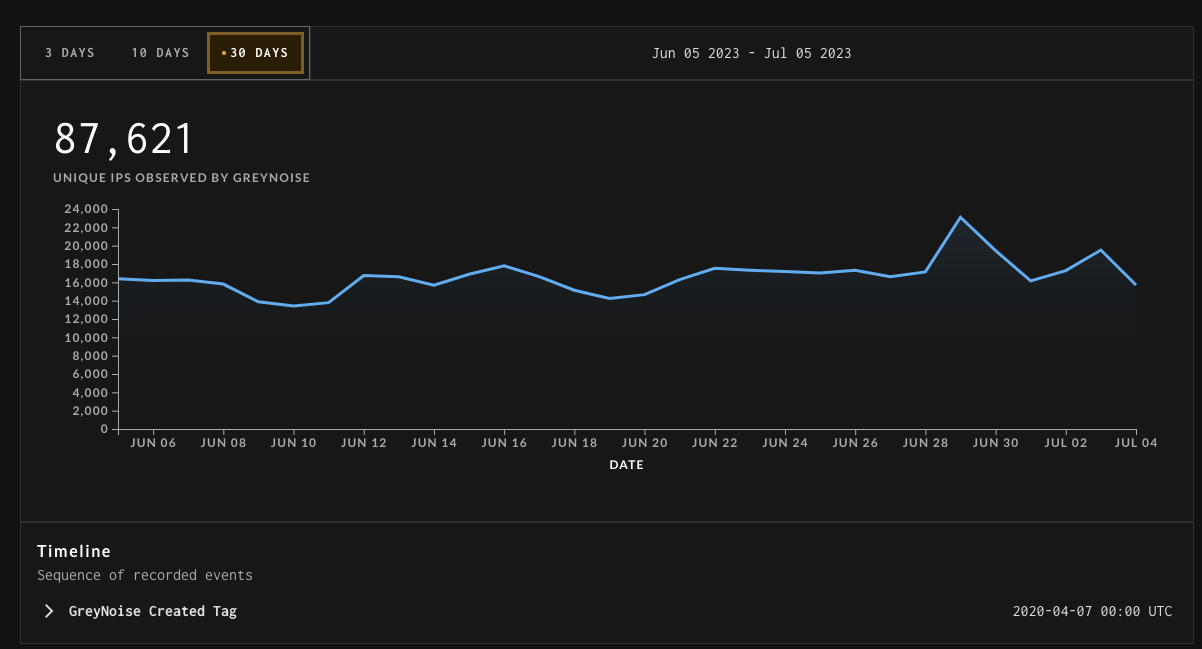 The section header is a graph of the daily number of IP addresses dedicated to launching SSH bruteforce attacks in my massive internet sensor network at work. It shows two “bumps” at the tail end of the chart, and overall elevated attack infrastructure dedication. These correspond well with Akamai’s findings (at least I can explain this coincidence).