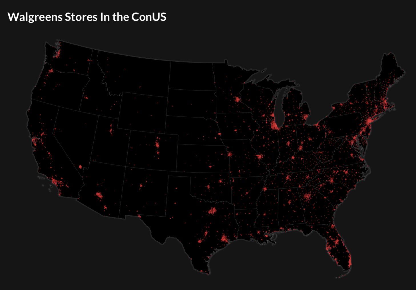The store map does mirror U.S. population density maps, and one thing that hit me whilst reviewing it was just how insane the logistics have to be for managing the supply chain to each of these stores. Merely stop and think about what’s involved to get a single box of band-aids to each and every store. Extending that to all the other medicines, first aid, food, supplements, household items, and more can really get the minds of systems thinkers truly spinning wildly.