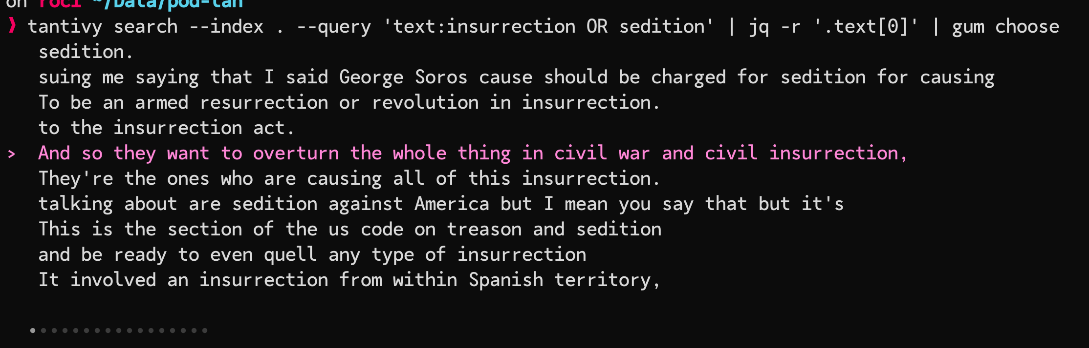 $ curl -s "http://localhost:3000/api/?q=text:insurrection+OR+sedition&nhits=1"