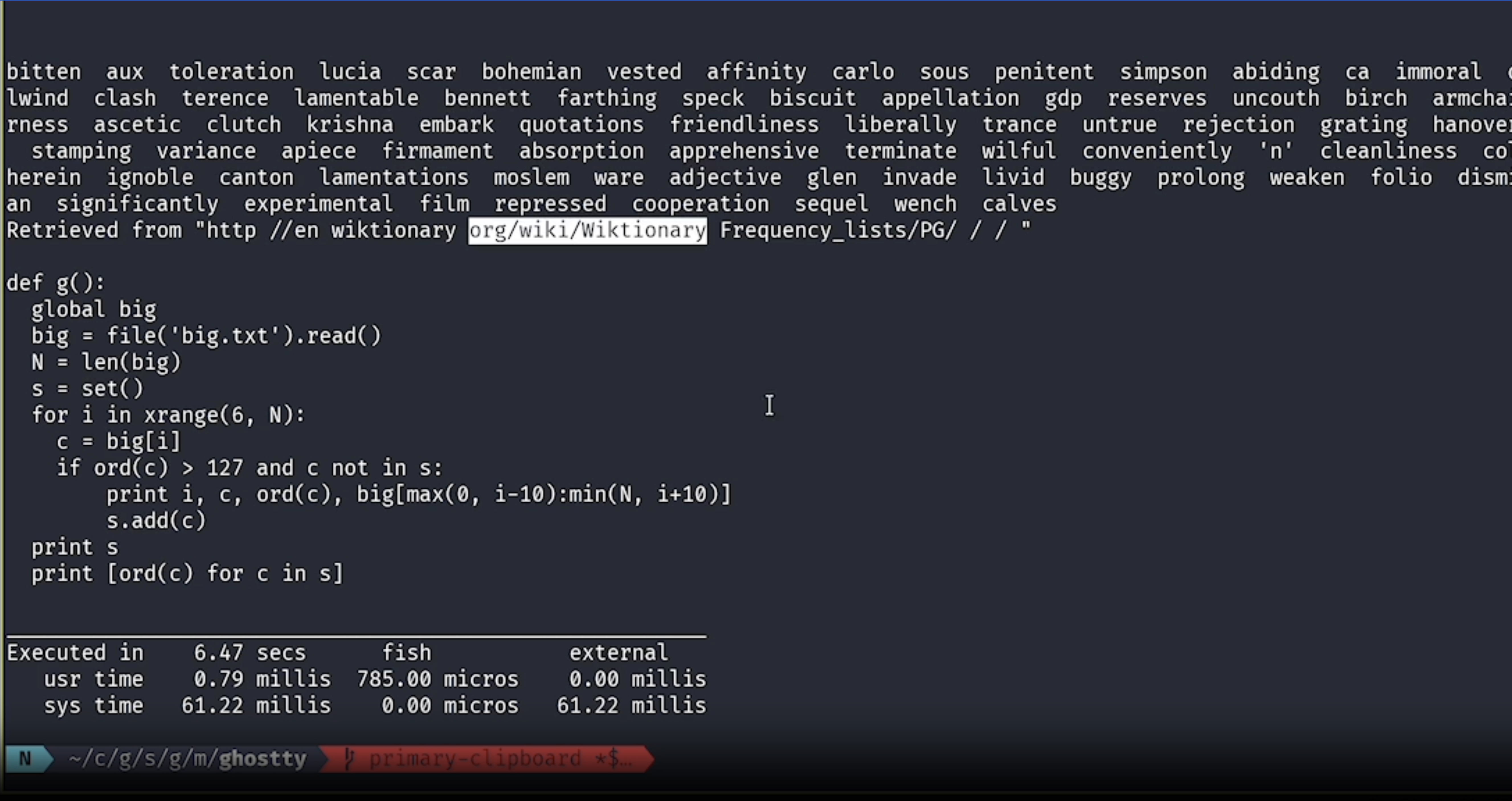 The left thumb is still on the mend (typing left-CMD and hitting the spacebar w/it are both verbotten, sigh), so I took the opportunity to steer folks to another, new-ish site for the first section, and have slightly fewer characters-per-section for the other two. Hoping this digit gets back to 100% sooner than later.