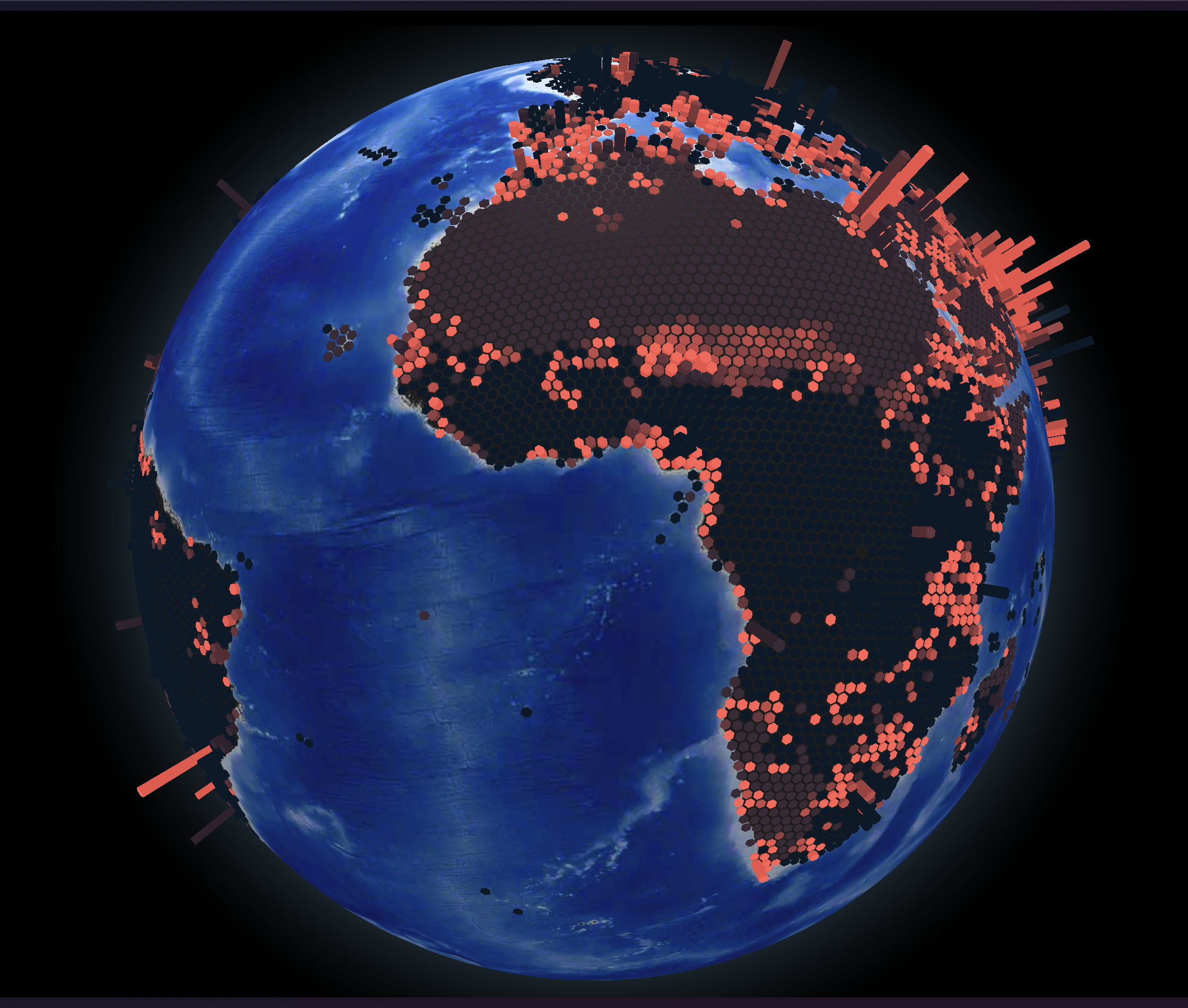 The central component is an interactive globe that lets us hop around the world to see the varying impacts and severity of climate change. The story and visuals are grounded in hard facts and data, pulled straight from the Intergovernmental Panel on Climate Change (IPCC) report and a ton of research by climate scientists.