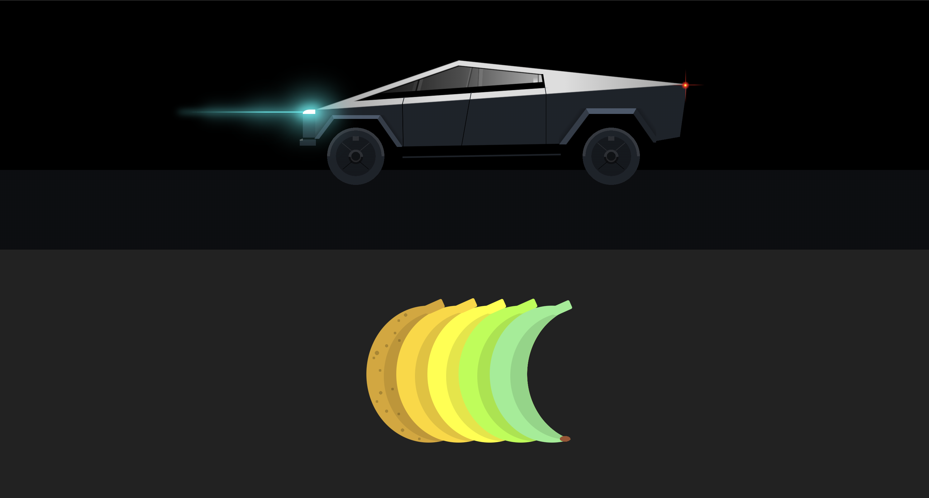 Lynn’s slick render of Elon’s IRL-hideous, daft, and still unavailable Cybertruck is in the section header. You can check out the pre-Pug’d source which renders to the code, below: