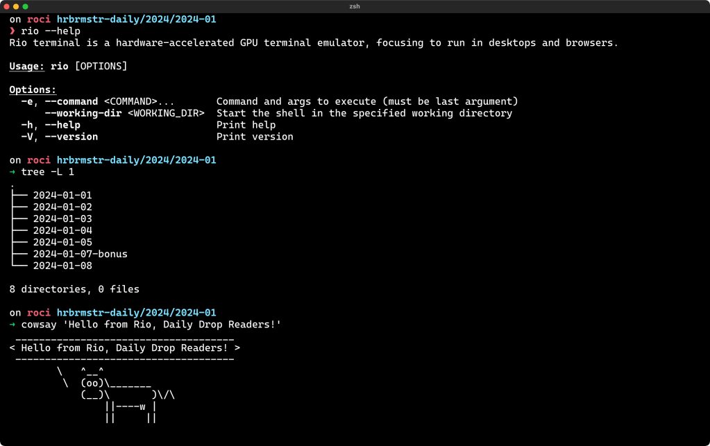 Now, we have WezTerm, which also fits that description. BUT! Rio runs not only on desktops, but is also desgined for browsers (thanks, ofc, to WebAssembly/WASM).