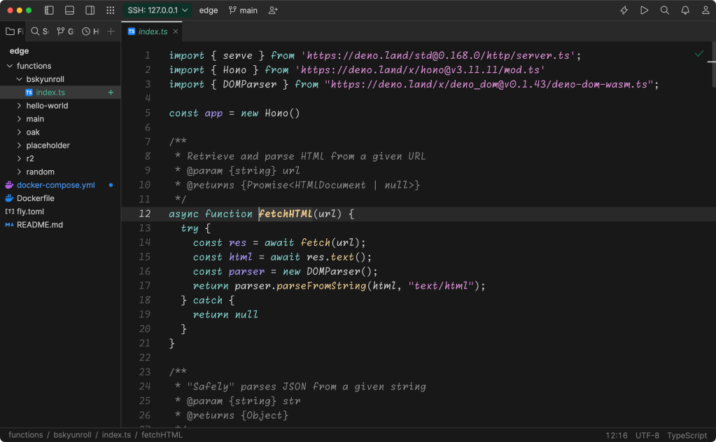 So, “Fleet” is yet-another integrated development environment (IDE). This one is built on the Java Virtual Machine (JVM), so it runs everywhere and is not an also-ran Electron app. It offers a distributed architecture, allowing for collaborative coding sessions where we can share not just the editor, but also terminals and debugging sessions. Fleet also provides remote editing, similar to the way one can remote in with VS Code (or, y’know, old-school ssh then use vim). The section header is a screencap of me using it to access the server. I usually put some extended Drop examples on for y’all.