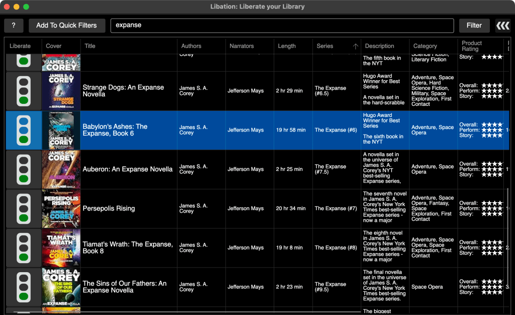 If you have an extensive library, this process will take a while, and you may want to exclude any podcasts or Audible-only casts (like the NYT/WaPo/etc.) from the archive (unless you do want those backed up as well). I’ve also had to restart the app more than a few times (it’s a single human project with a few intermittent extra committers, so I fully expected some rough edges).