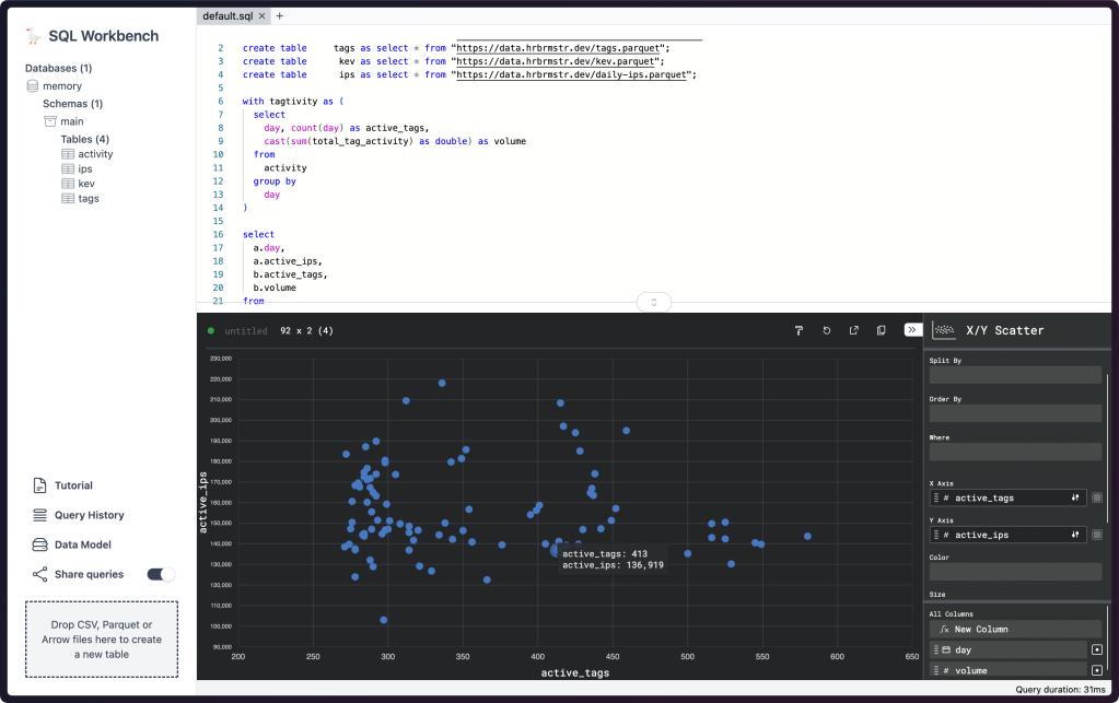 SQL Workbench; Tabulator; DuckDB Remote Parquet Two Ways