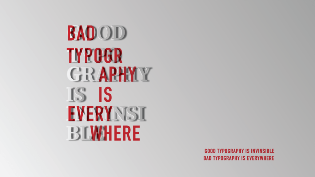 Typography can be described as the art of arranging glyphs and text to make written language legible, readable, and visually appealing. Modern design relies heavily on typography, and it’s use in what we see around us influences how we perceive and interact with each of these creations.