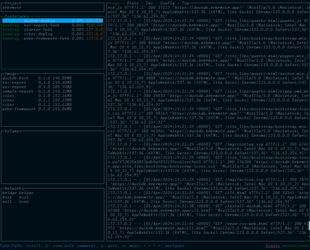 After using k9s for a while, and also realizing I like working with OrbStack’s Docker GUI more than typing Docker commands, I set out to see if there was some similar TUI’s for Docker and, of course there are!