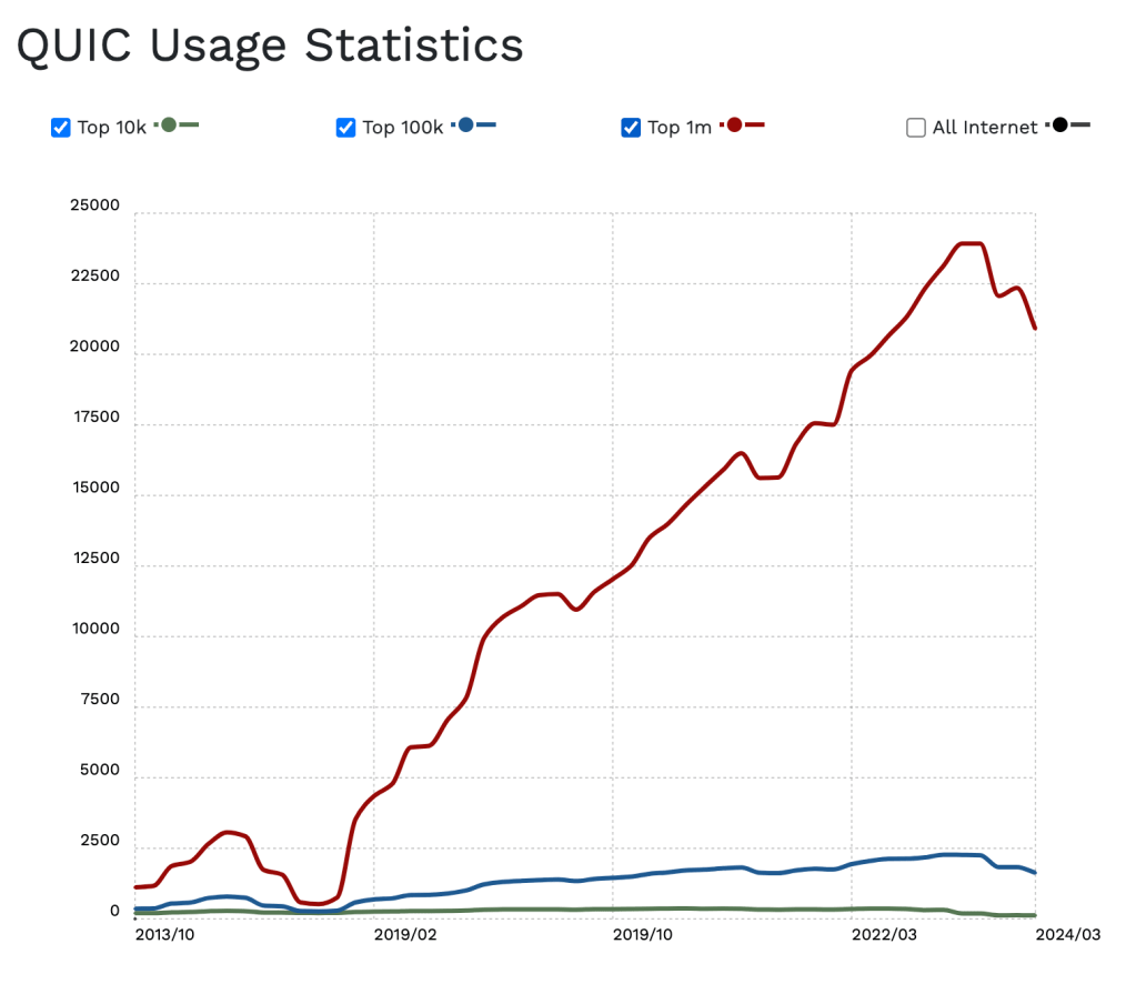 As readers likely know, QUIC (Quick UDP Internet Connections) is a modern transport layer network protocol designed to improve the performance and security of internet communications. Initially developed by Google, QUIC is now being standardized by the Internet Engineering Task Force (IETF) and serves as the foundation for HTTP/3, the latest version of the Hypertext Transfer Protocol.
