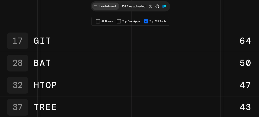 We recently talked about Brewfiles in the Drop, and the folks from Warp (which is a great idea of a browser, if only I could run the server on my own) have come up with Brewfiles.com. It’s a way to share your Brewfiles, which lets it build a “leaderboard” of the most popular formulae.