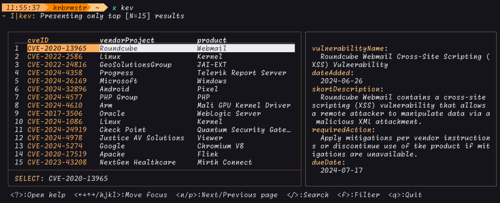 There is a cyber edge to X-CMD, as it has some specific tools for both CISA KEV, Shodan, OSV, and some other adjacent utilities. A KEV screenshot is in the section header.