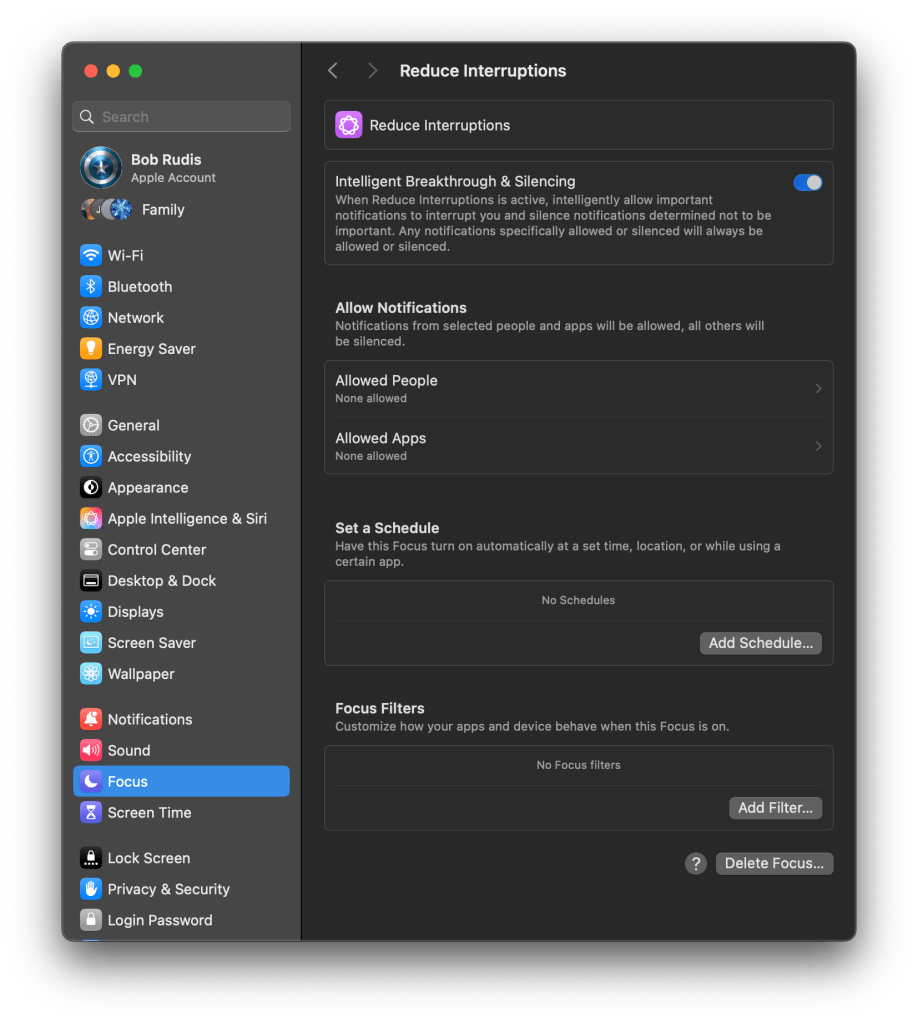 The only other item I found is something called “Intelligent Breakthrough & Silencing” which uses “AI” to intelligently allow important notifications and silence dumb ones: