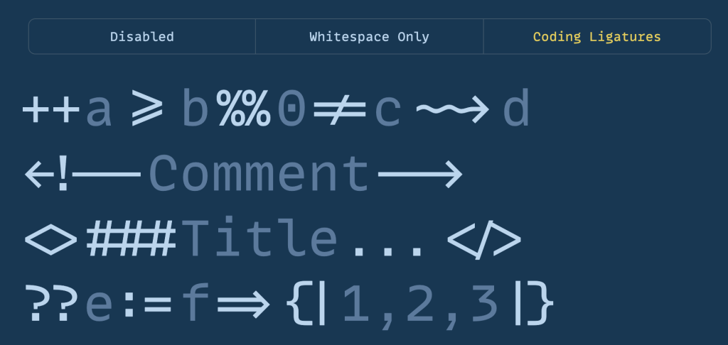 This typeface is fully monospaced and is currently available in four cuts, with more planned for future releases. It includes variable fonts and over 150 ligatures tailored for programming languages (R is supported, but it’s kind of “meh” ligature-wise tbh). Additionally, it supports a wide range of good ol’ human languages, making it versatile for various applications beyond code, such as user manuals, movie scripts, and control panel designs.