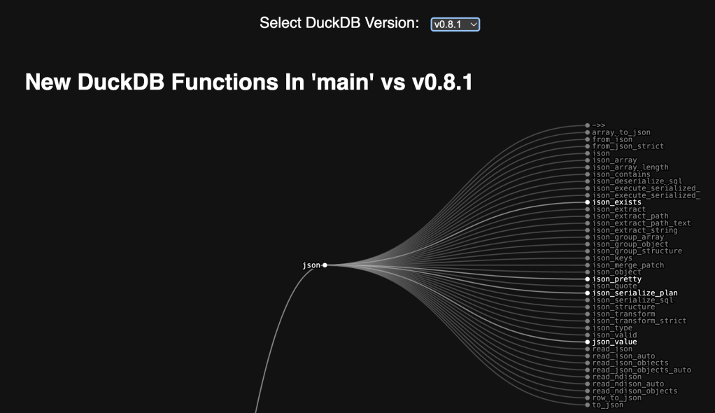 After I finished penning yesterday’s code and Drop, I thought “It’d be cool to see how far DuckDB core extension functions have come!”. (I swear I wasn’t trying to get out of yard work.)