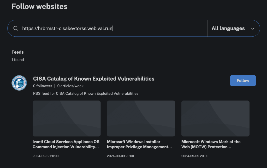 CISA KEV-To-RSS In Val Town