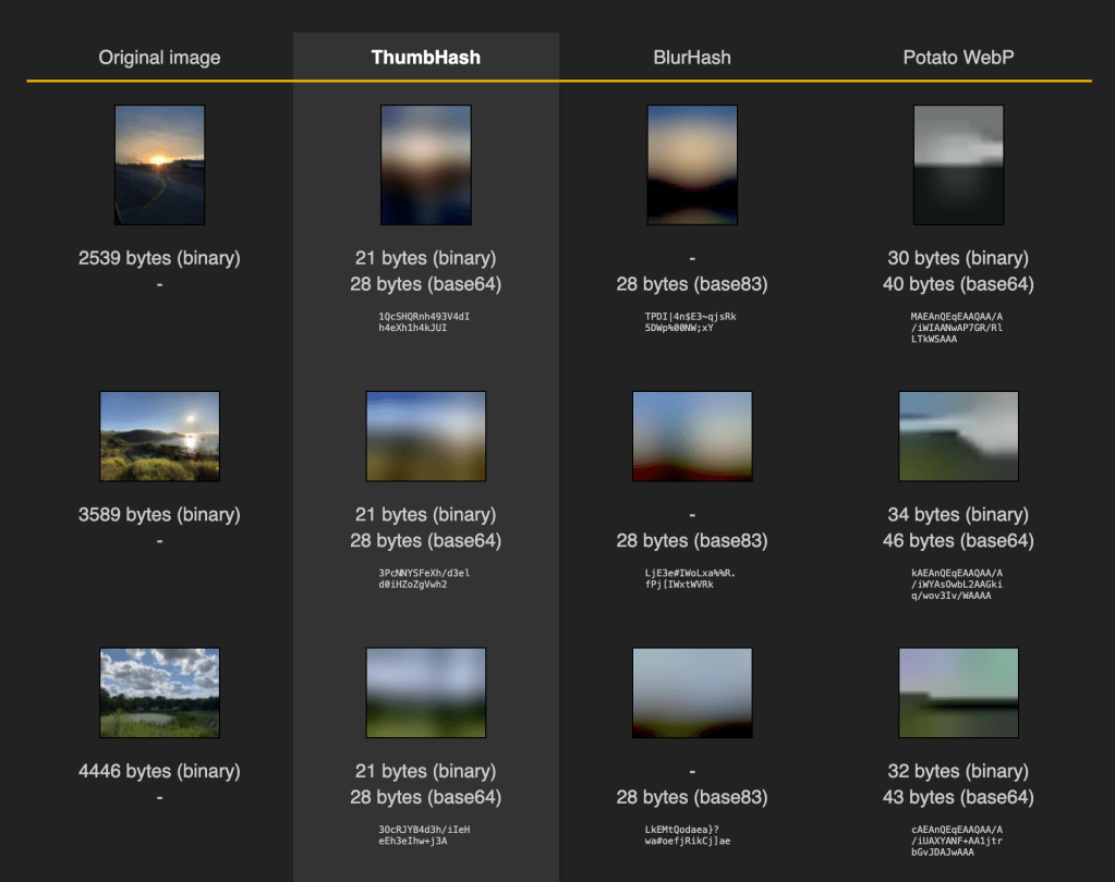 ThumbHash, BlurHash, & “Potato WebP”
