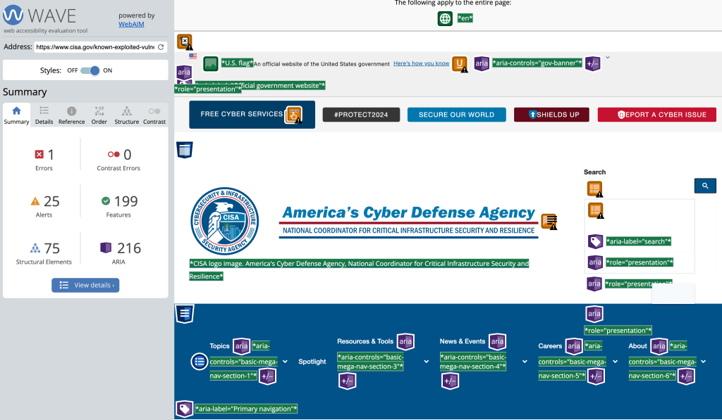 The section header is for the CISA KEV site: https://wave.webaim.org/report#/https://www.cisa.gov/known-exploited-vulnerabilities-catalog.