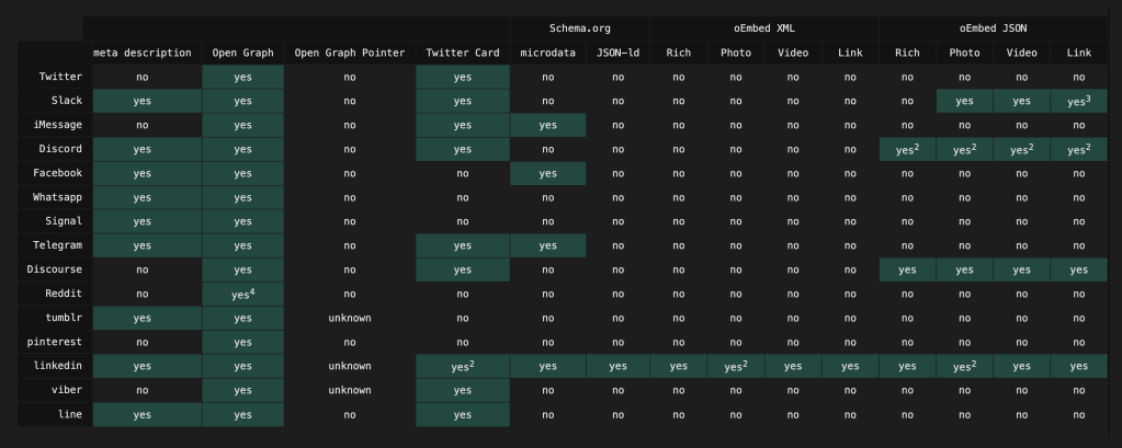 The author provides detailed guidance on implementing link preview meta tags, which are handy for controlling how URLs appear when shared across various platforms. It also covers the sometimes confusing x-ua-compatible meta tag implementation, and provides comprehensive information about favicon implementations across different browsers.