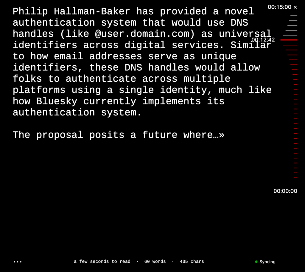 Phillip Hallam-Baker has proposed a novel authentication system that would use DNS handles (like @user.domain.com) as universal identifiers across digital services. Similar to how email addresses serve as unique identifiers, these DNS handles would allow folks to authenticate across multiple platforms using a single identity, much like how Bluesky currently implements its authentication system.