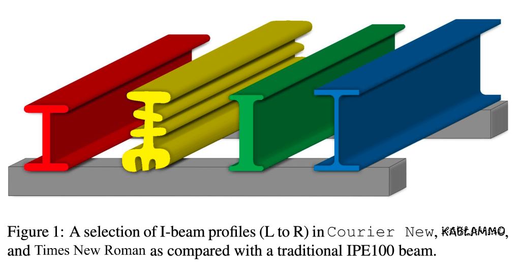 Brought to you by the “Too Much Time And Computational Power On Their Hands” department comes this study (GH) which questions whether the traditional I-beam design is truly optimal by testing letter-shaped cross-sections from over 1,000 typefaces. Researchers used both physical testing with CNC-machined plastic beams and computer simulations to compare performance under different types of stress.