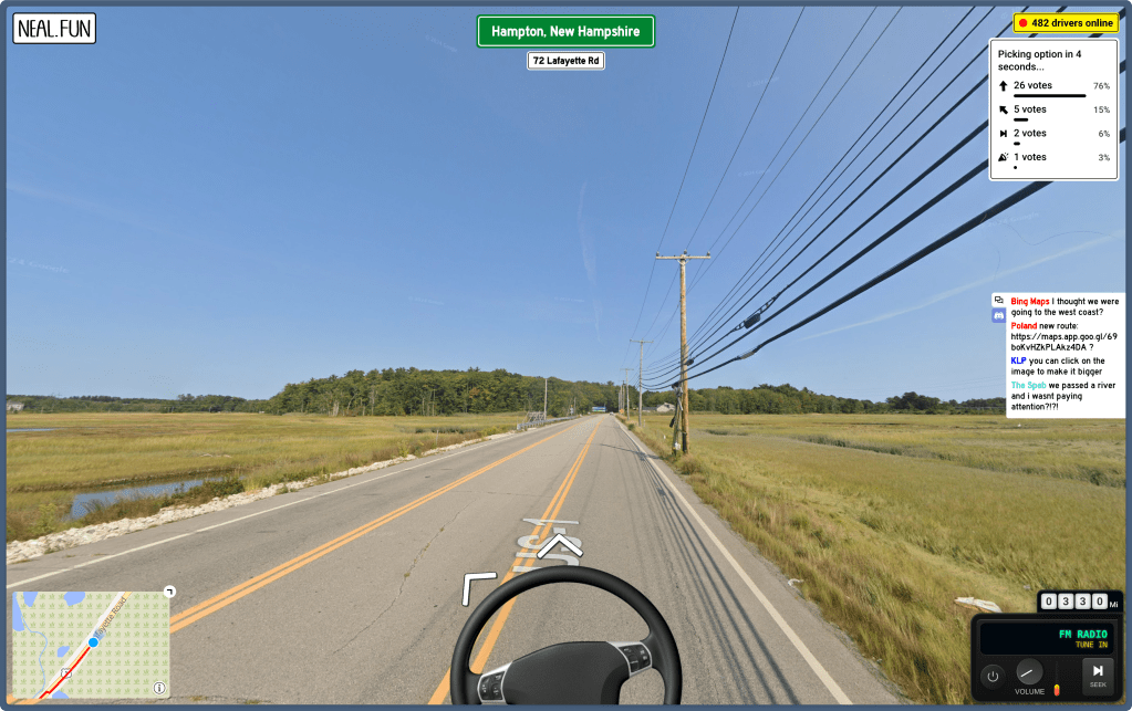 Ever wanted to go on a road trip with hundreds of people you’ve never met? That’s precisely what Neal.fun’s Internet Roadtrip offers.