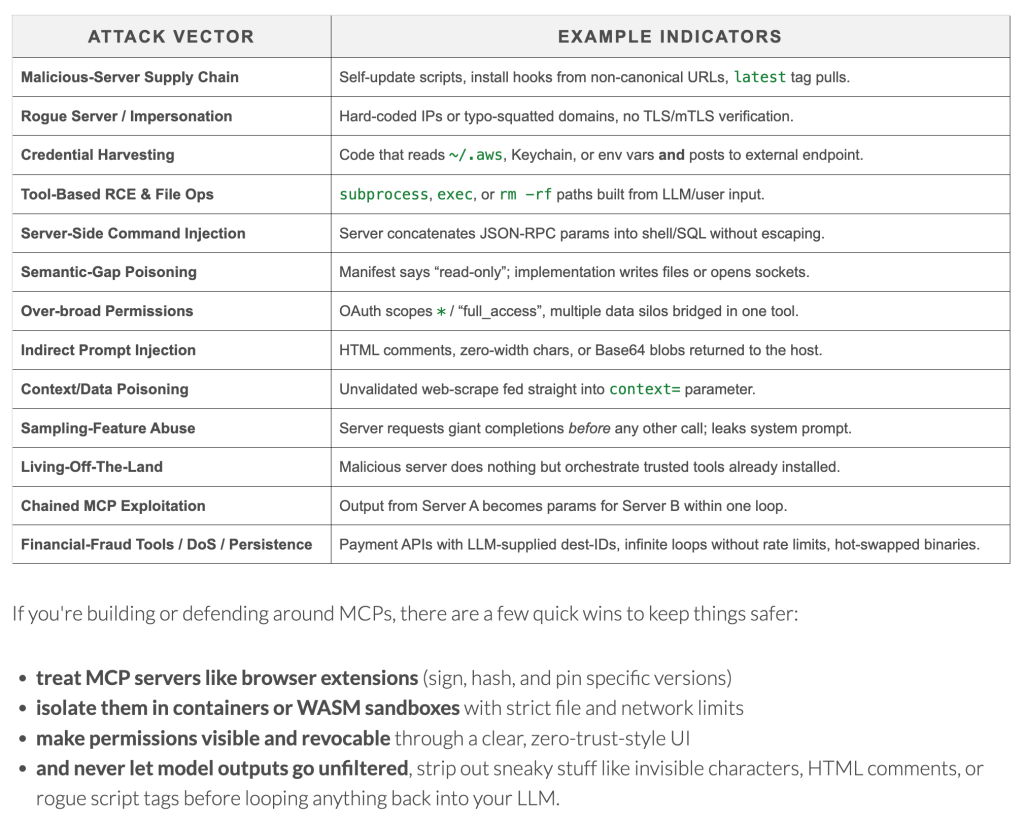 • Supply Chain Attacks: Self-updating servers pulling from non-canonical URLs, essentially turning your AI tools into trojan horses.