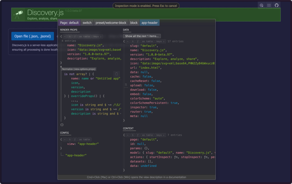 Most data analysis tools force you into their mental model. Discovery.js inverts this relationship. It provides primitives for exploration while letting your data’s structure guide the interface. The result feels less like fighting a tool and more like having a conversation with your data.
