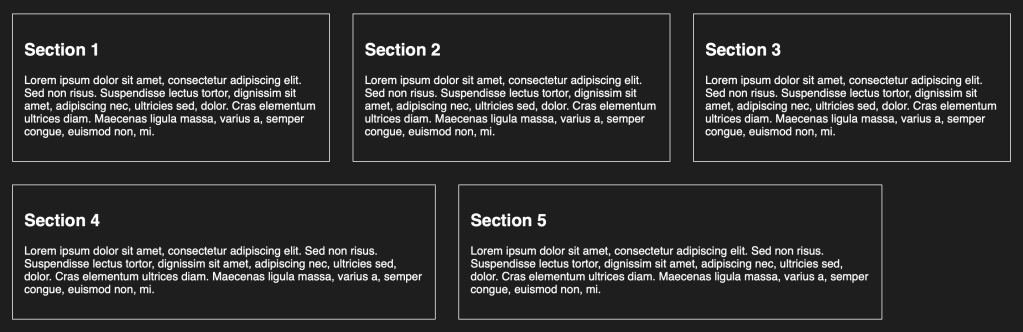 Let’s say we want the margin box of each section to take up ¼ of the space. calc() makes quick work of this: