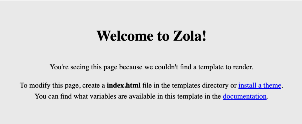 $ zola serve # Preview at localhost:1111