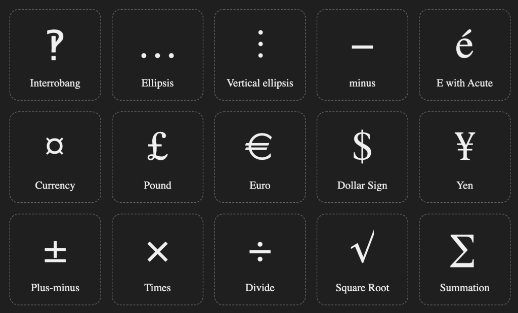 - Symbols offers a quick symbol lookup tool with a vanilla JavaScript implementation, allowing one-click access to symbols, as seen in the https://symbol.wtf/ site.