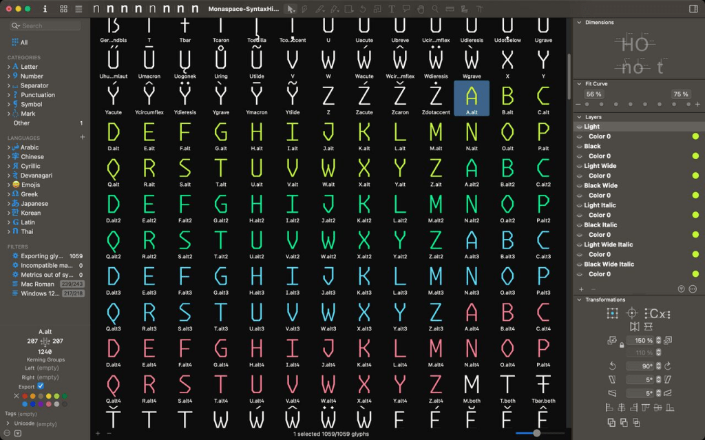 Lotvonen asked a pretty radical question: can syntax highlighting live inside the font itself (GH)? The answer, believe it or not, is “yes,” thanks to a pair of obscure OpenType features.