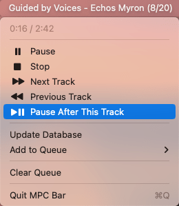 Once the server is running, you need a client, which you can hit the above link for or wait for a future Drop (perhaps even tomorrow’s Drop!). But, just so you can get going today, the command‑line tool mpc (which the brew command, above installed) lets you control playback from any shell script.