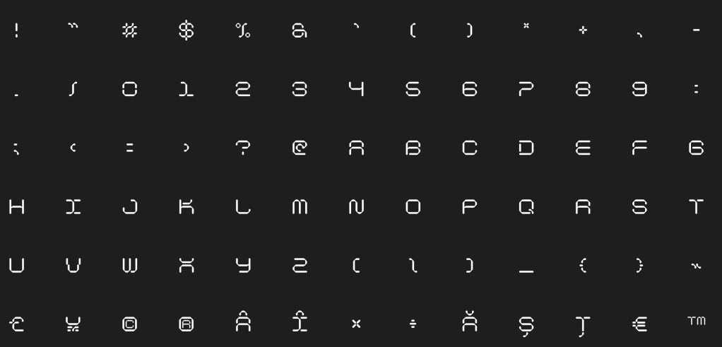 At a purely technical level, it’s a display font with 82 glyphs, so we are absolutely working with this in headlines and statement pieces. Do not even remotely consider using it for long reads. The high-tech vibe makes it especially useful for sci-fi branding, digital interfaces, or any project that wants to feel future-forward without going into full robot mode.